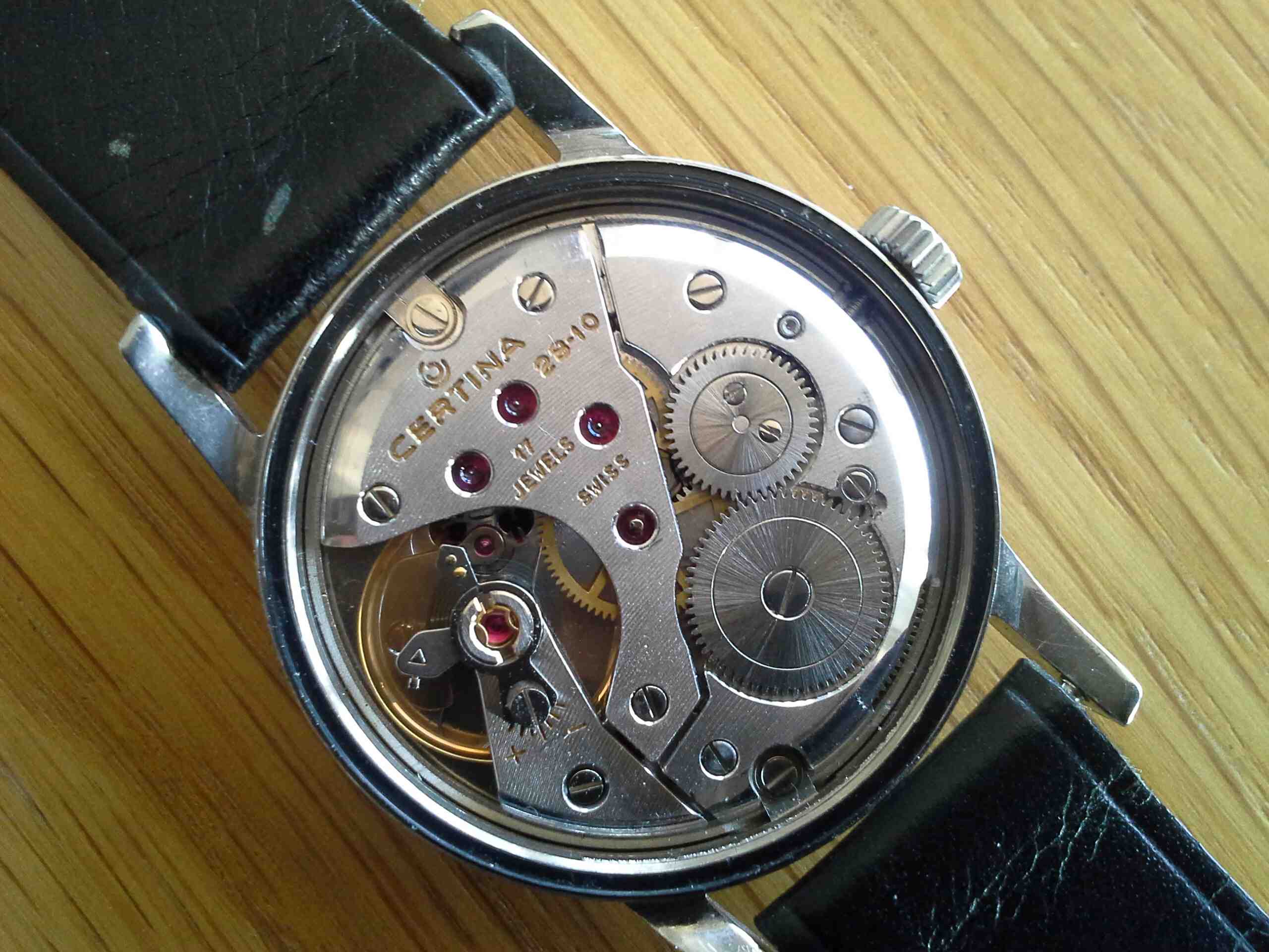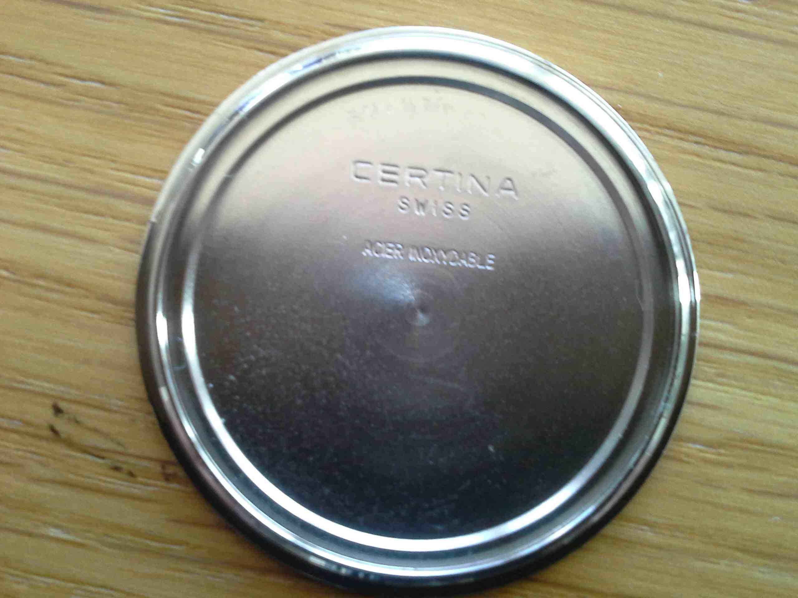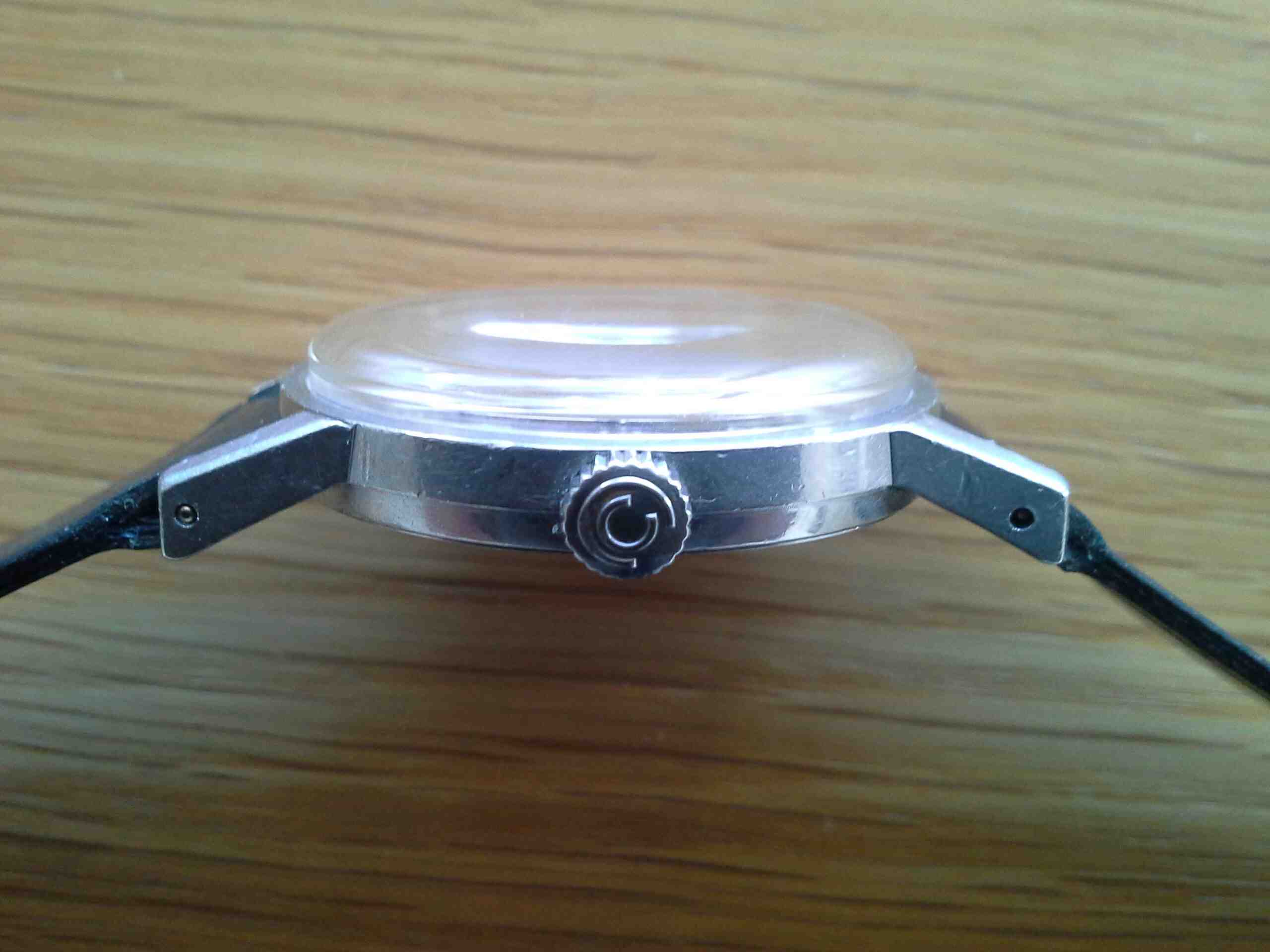 Flashy Certina "Waterking" Manual Wind, Cool Black Dial, Small Second Hand, Stainless Steel Case with Screw Back, Swiss Quality Movement Signed Certina, Cal. 28-10, Case Diameter 34mm (not Counting Crown), ca. 1965