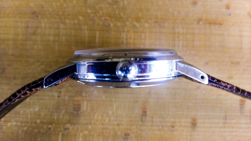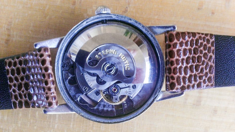 Another Classic: Eterna-Matic Automatic, Plain Honest Dial with Eterna-Matic Logo, Second Hand with Red Colour at the Edge, Stainless Steel Case with Screw Back, Swiss Quality Eterna-Matic Movement, Case Diameter 33mm (not Counting Crown), Eterna Logo on Original Crown, ca. 1960