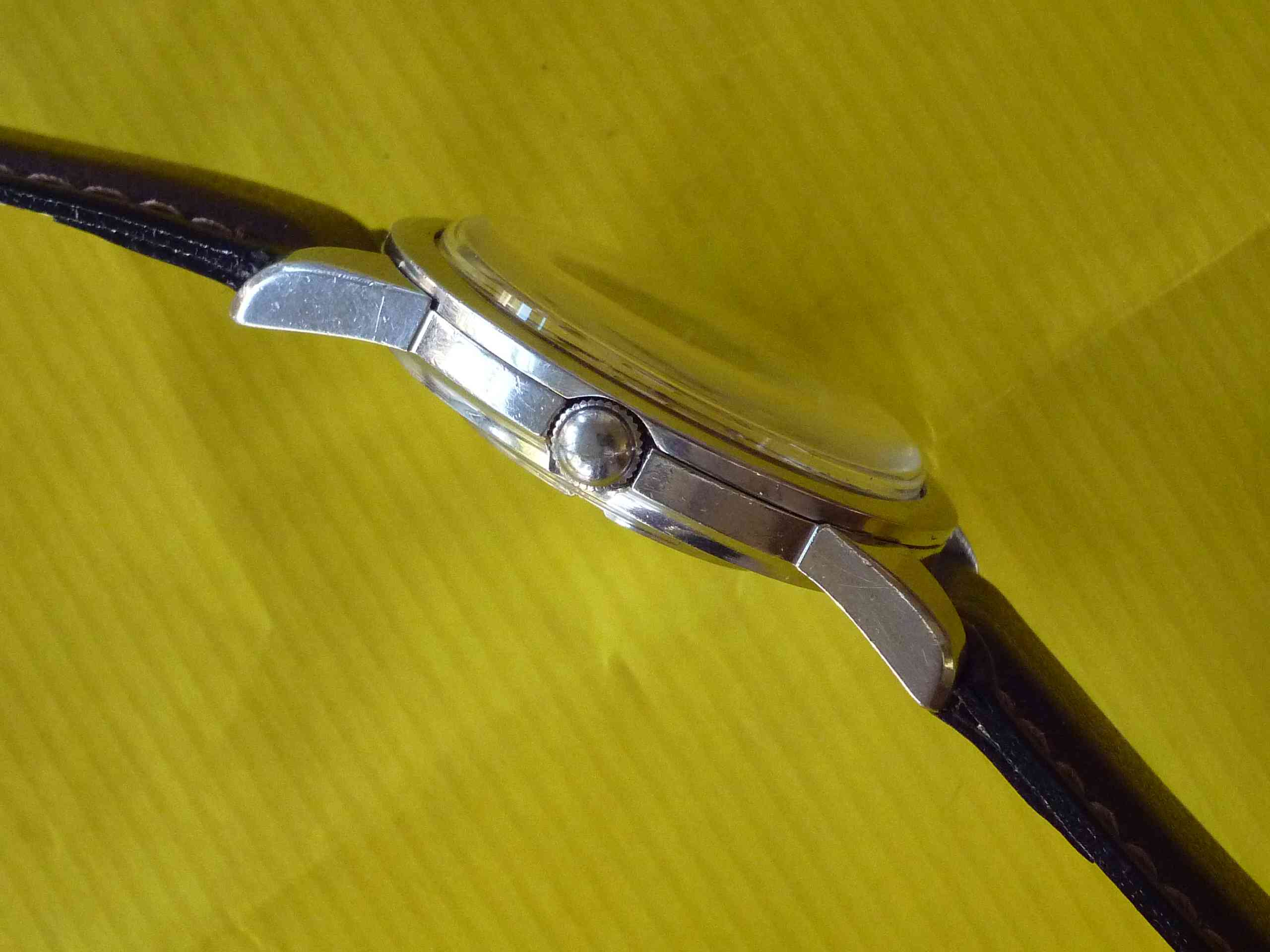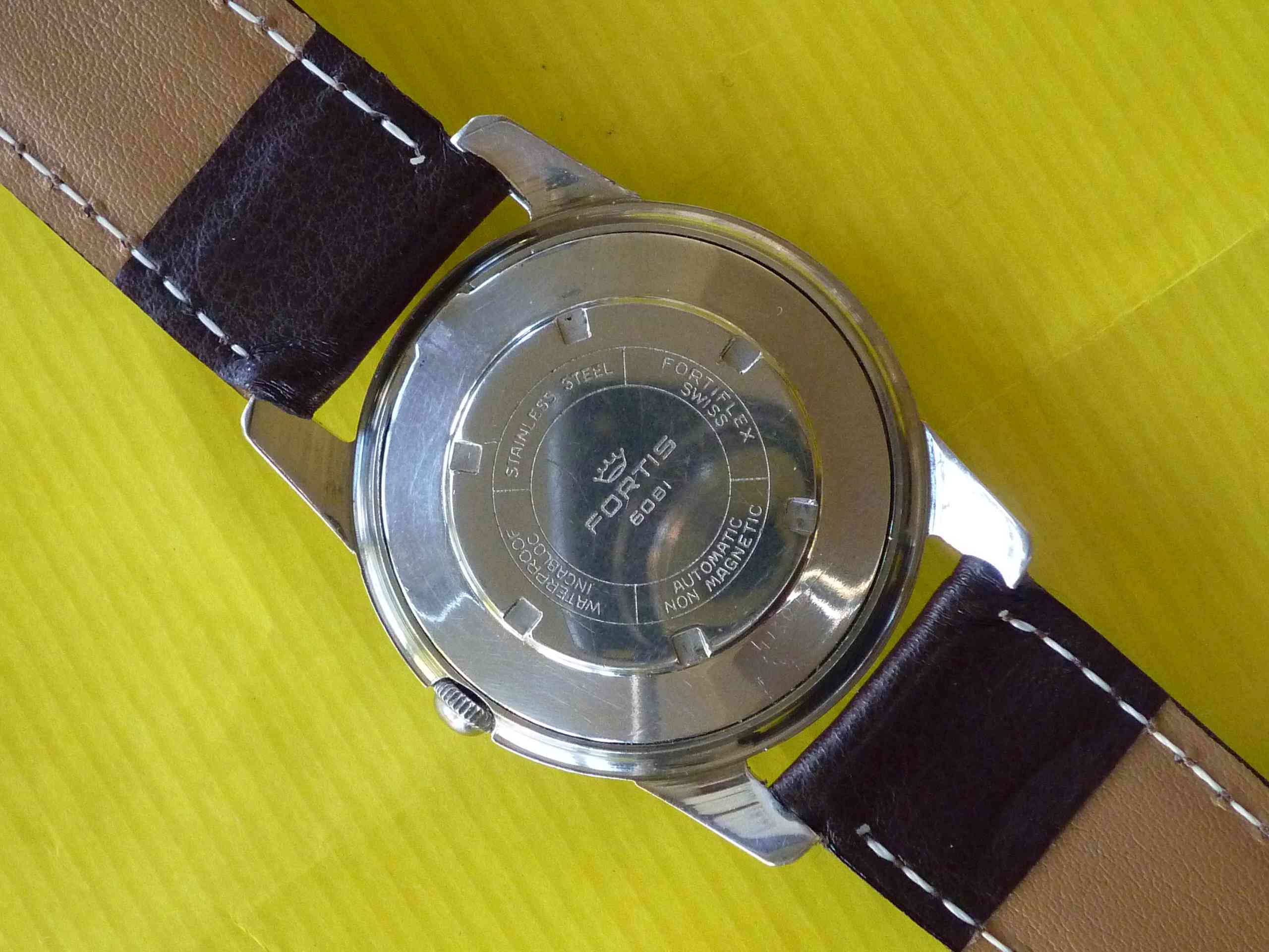Cool Classic Fortis "Performance" Automatic, Date at 3, Stainless Steel Case with Screw Back Signed "Fortis 6081", Hidden Crown, I don't have the right Key to open the Case, Diameter 34.5mm (not Counting Crown), ca. 1965
