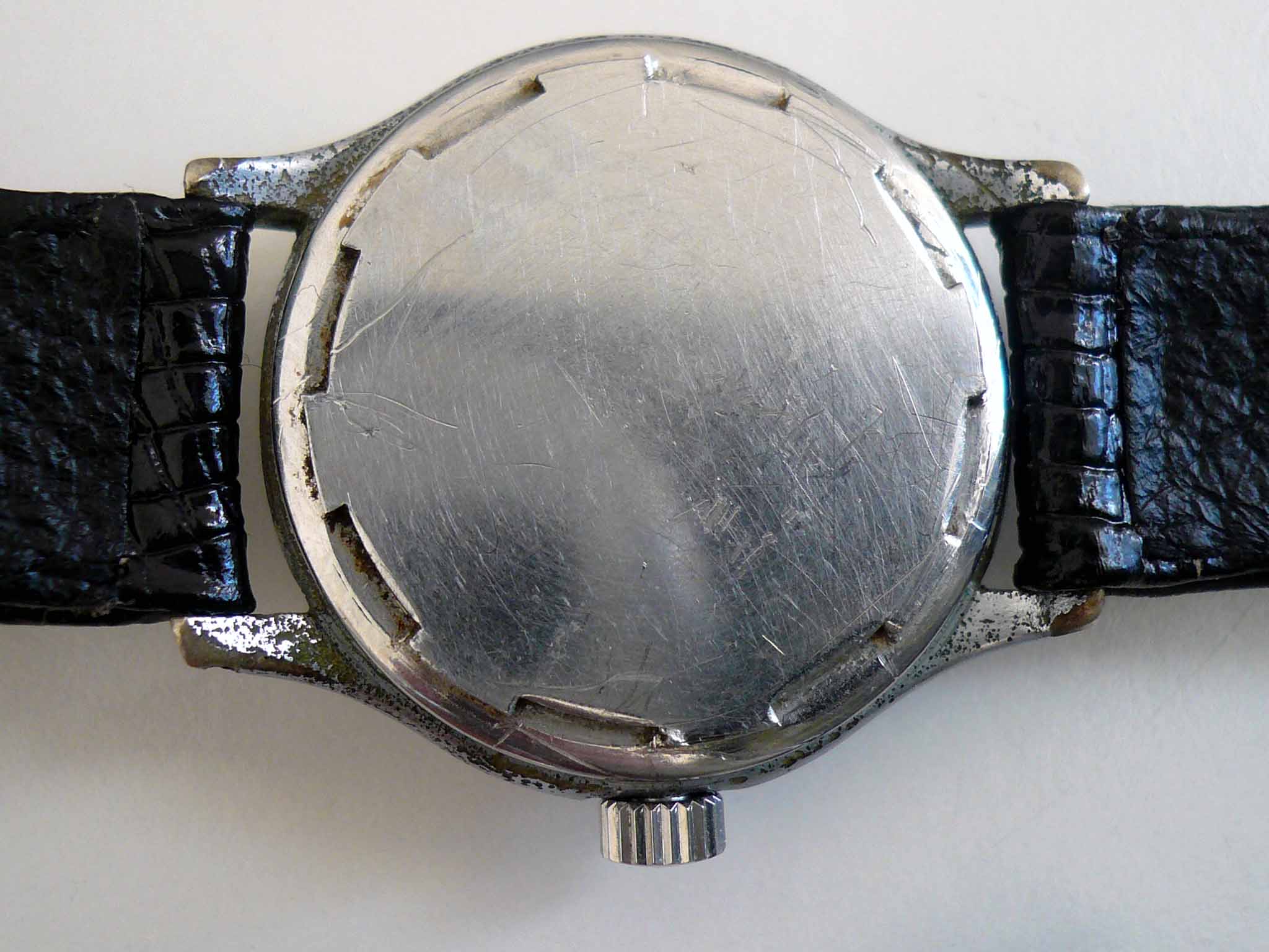 Cool Military Style Marvin "Hermethic", Manual Wind, Case Diameter 31mm without Crown, Stainless Steel Screw Back, Red Center Second, Dial is Very Attractive, Case Shows Slight Wear, ca. 1945