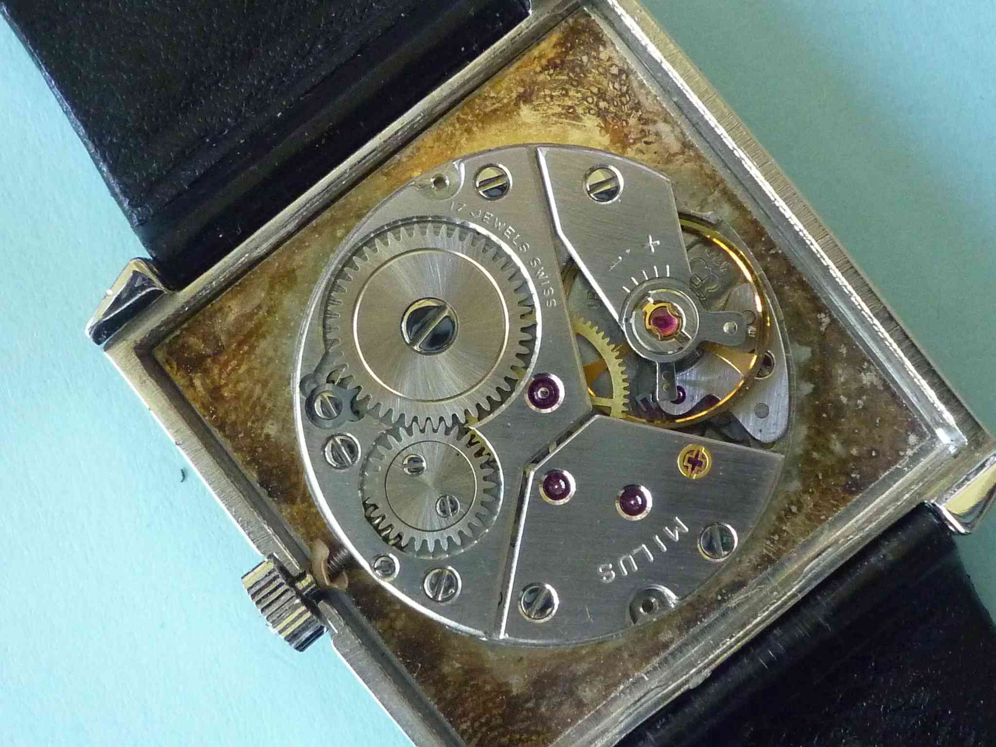 Elegant Milus Manual Wind, Square Stainless Steel Case, Plain Silver Dial, Case Size 34x30mm (not Counting Crown), Swiss Made Movement with 17 Jewels Signed Milus, ca. 1965