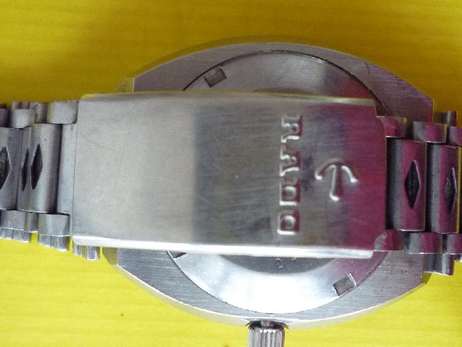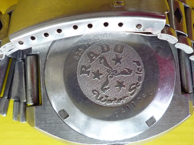 Big, Heavy and Solid Rado "Purple Gazelle" Automatic, Stainless Steel Case with Screw Back Signed "Rado Water Sealed", Day/Date at 6, Original Stainless Steel Band Signed Rado, Case Size 36x41mm (not Counting Crown), ca. 1970