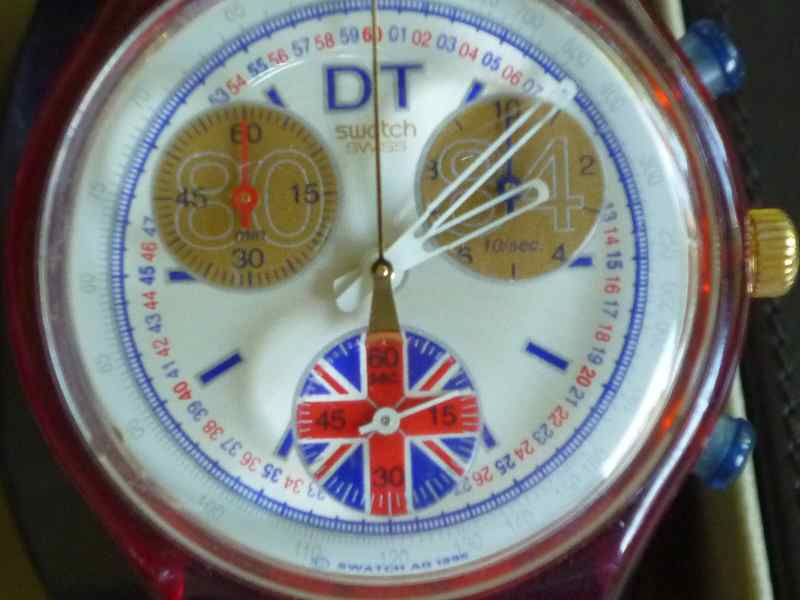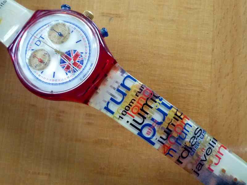 Swatch "Daley Thompson", Chronograph, 1996 Olympic Special Edition, Very Unique Design (see Pictures), Case Diameter 36 mm, Water-resistant 30 Meters, used